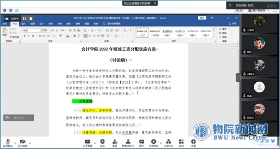 2022年绩效工资分配实施方案的主要内容,也提出了实施方案制定过程中遇到的问题及存在的困惑。学院领导班子成员针对方案进行了补充汇报,并对相关内容进行讨论。