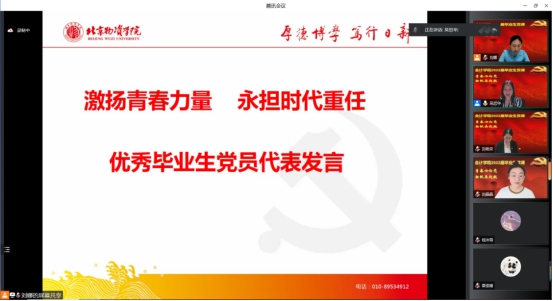 会议伊始,毕业生党员代表刘晶晶和于志超同学向学院党委做思想汇报,汇报了自己在物院求学、入党、学习、生活、工作和就业等方面的心历路程和收获体会,以及对未来的计划和作为一名党员服务奉献社会的决心,并承诺始终不忘党员身份、不负母校培养、不负老师教诲,服务人民、服务社会,激扬青春力量,勇担时代重任。
