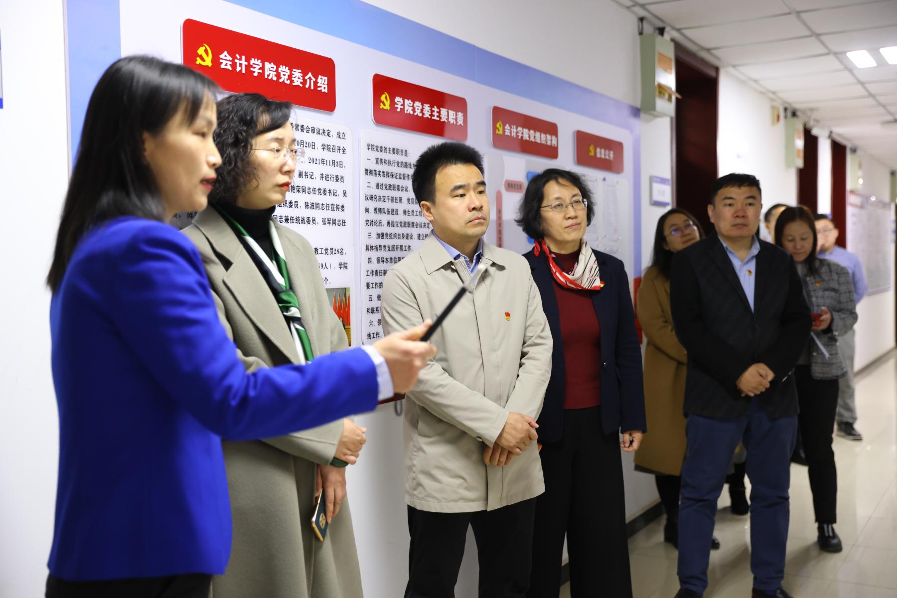 发展规划展板、共青团宣传展板、教育教学展板、教师党支部展板、工会展板和学生党员先锋榜样事迹展板等,检查组一行对学院成立情况、专业建设、人才培养、思政教育、教学实践、课程体系、群团建设等方面有了全面的了解,并对学院各方面工作的开展情况及成立一年多以来取得的成绩表示了充分肯定。