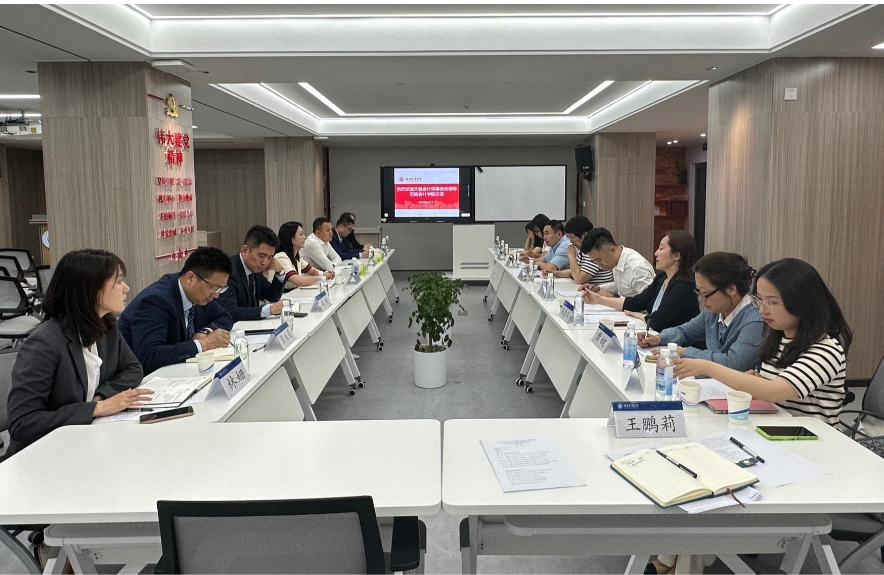 在科研楼300与天健会计师事务所就大学生实习实践相关事宜进行沟通交流。天健会计师事务所北京分所副总经理兼人力资源部主管常艳、天健会计师事务所合伙人兼北京分所审计一部主管高高平、天健会计师事务所合伙人副总监兼军民融合事业部总经理冯伟、天健会计师事务所军民融合事业部副总经理曾辉、天健会计师事务所军民融合事业部业务二部负责人张永晋、天健会计师事务所军民融合事业部综合管理组高级项目经理姚敏、天健会计师事务所北京分所人力资源部校招经理林姗应邀参会。校党委常委、 av99