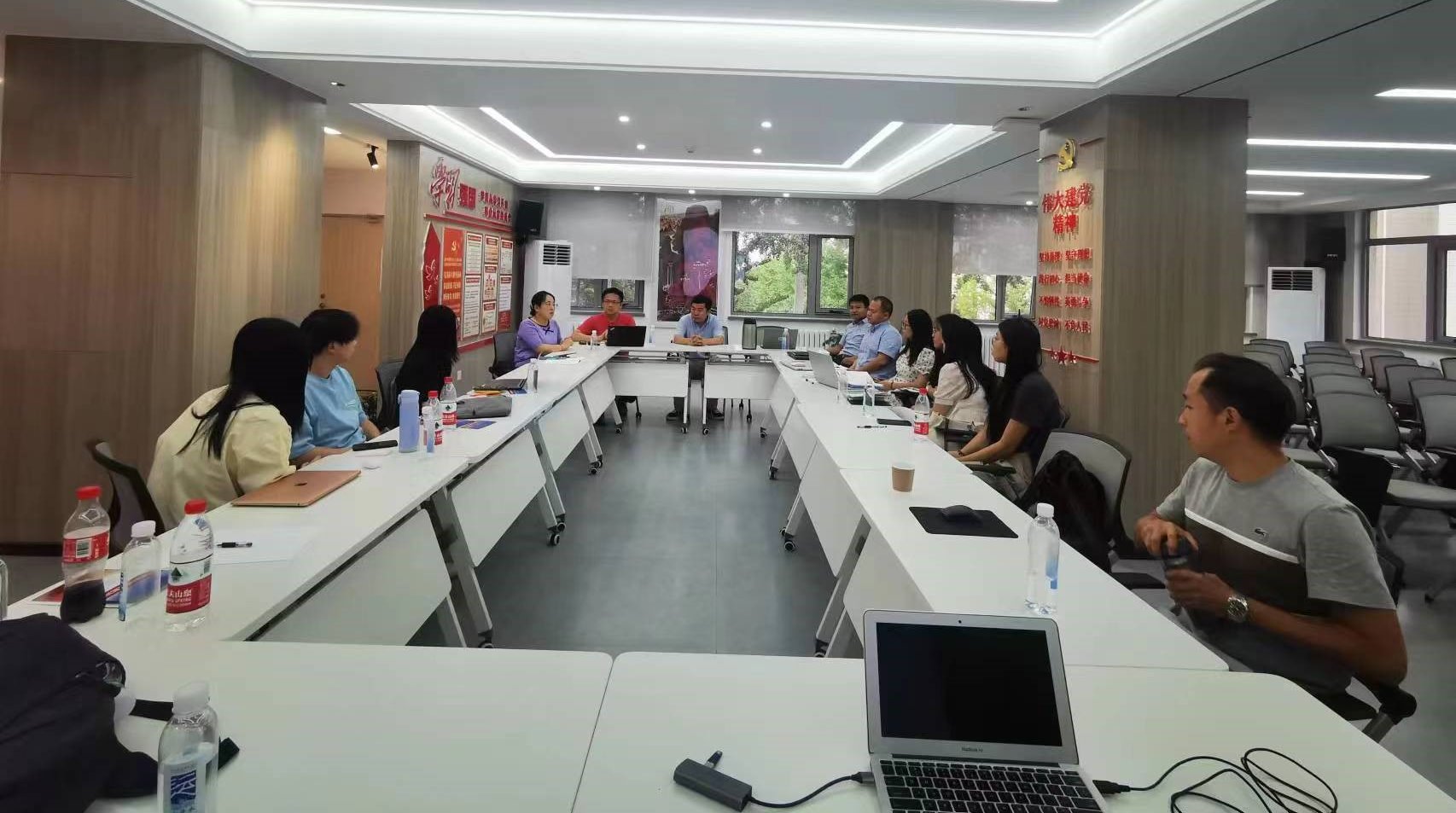 院长张军、项目负责教师杨野、项目负责教师杨超、专职组织员张飚及9名实习学生参加了会议。