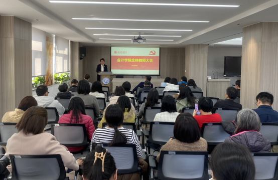 王美英副院长围绕教学项目申报、研究生培养、毕业生毕业论文安排、严肃教学纪律等方面进行了部署强调。王妤老师就学院2023年度财务执行情况作了公开说明。
