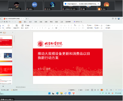 首先,中共党员教师杨野详细导学了国务院出台的《推动大规模设备更新和消费品以旧换新行动方案》。该方案是党中央、国务院着眼于加快构建新发展格局、推动高质量发展作出的重要举措,将大力促进先进设备生产应用,推动先进产能比重持续提升,推动高质量耐用消费品更多进入居民生活,畅通资源循环利用链条,大幅提高国民经济循环质量和水平。该方案既利当前、更利长远。杨野老师深入解读了该方案的背景、意义、总体目标和具体要求,特别强调了方案中提出的“四大行动”:设备更新、消费品以旧换新、回收循环利用和标准提升。杨老师还分享了不同省份在落实该方案时的具体措施和行动计划,为与会者提供了丰富的实践参考。