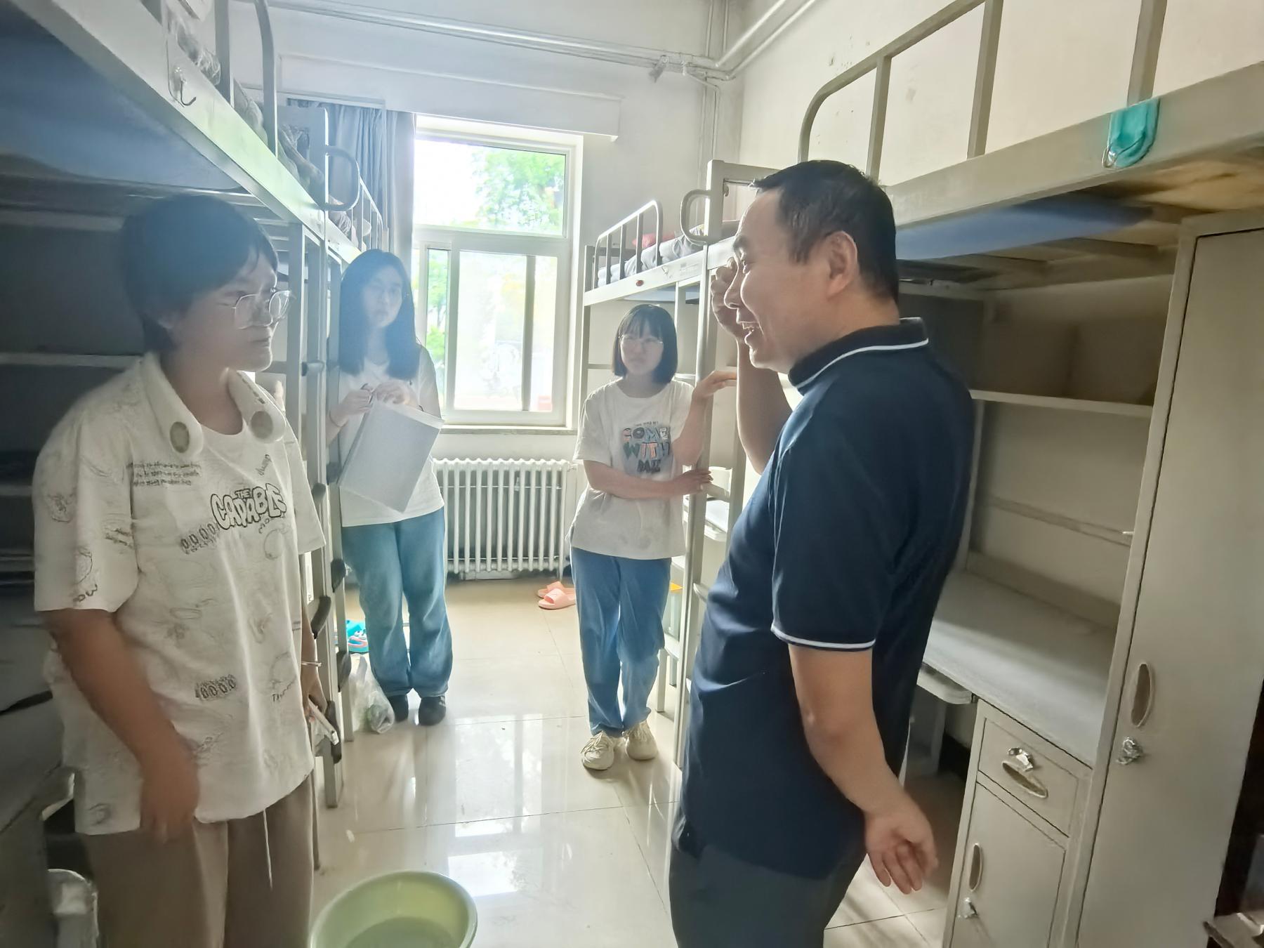 班子和辅导员前往新生宿舍走访,深入了解学生们的基本情况和住宿条件,与新生亲切交谈、关心大家的适应情况,老师们细致入微的关怀让新生倍感温暖。