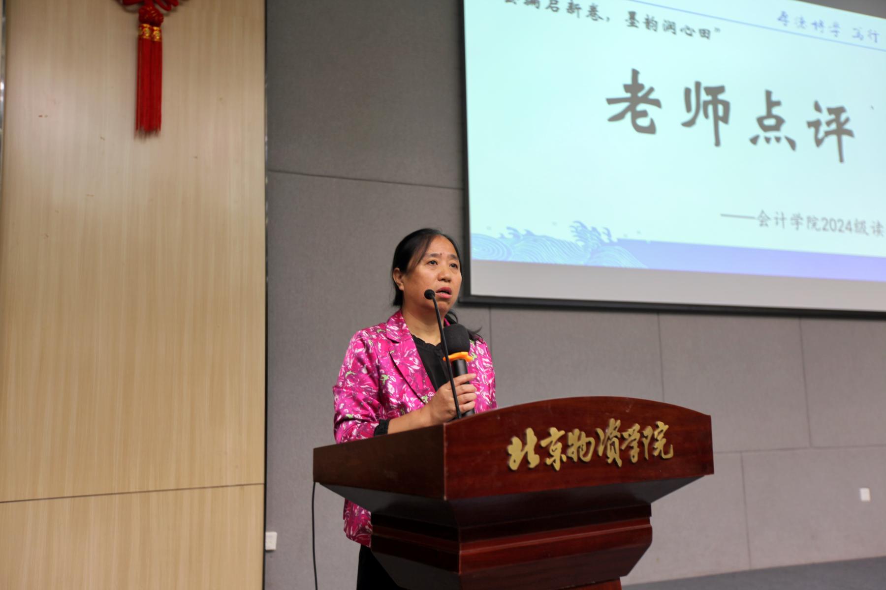 党委副书记鲁老师致开幕词。她表示与短视频等快餐式内容相比,阅读能够促进深度思考和知识积累,有助于构建和优化思维框架。鲁老师希望同学们能够将阅读作为一种终身学习的习惯,持续追求阅读的热爱。同时,也鼓励大家注重阅读的质量与深度,深入挖掘书中的内涵与价值,让阅读成为成长的阶梯和智慧的源泉。
