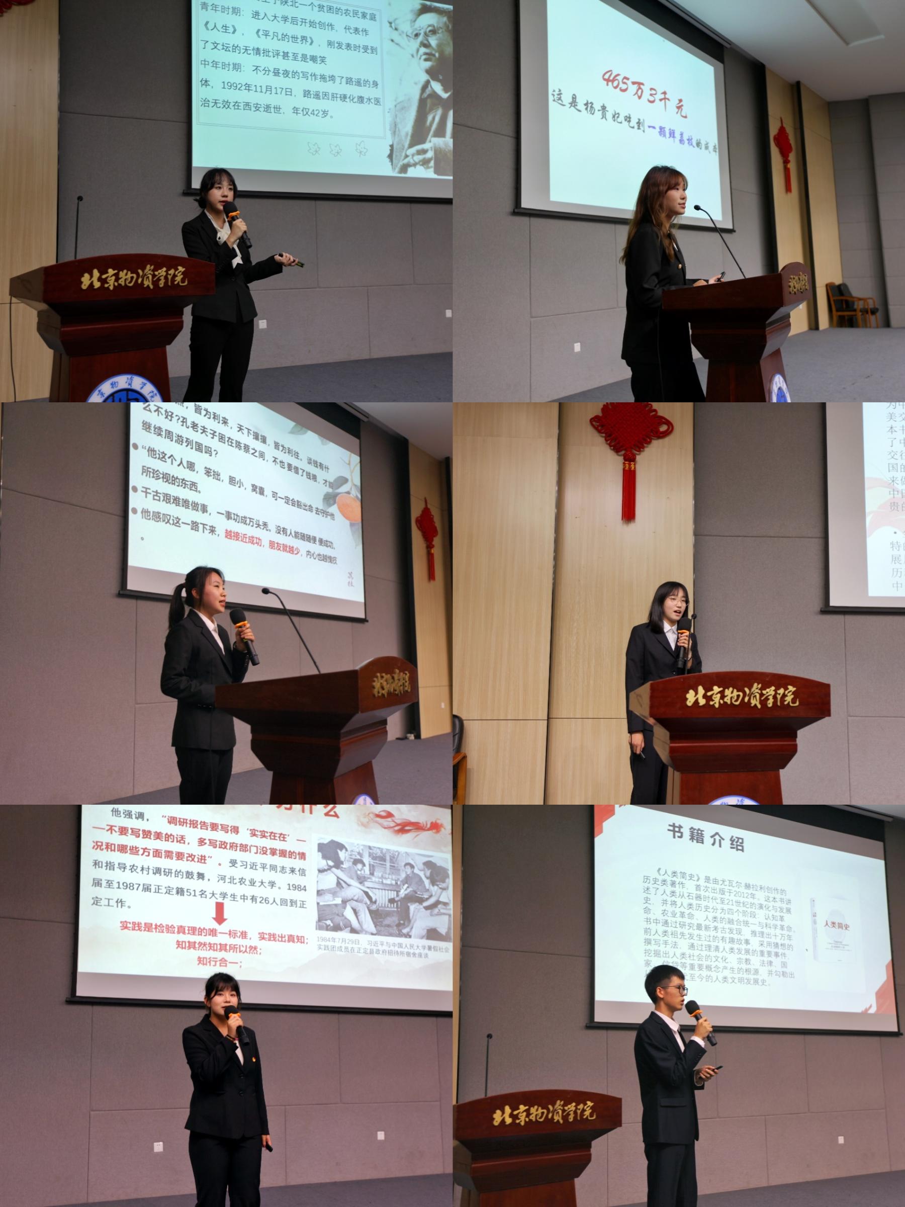 接下来是由来自7个新生班级的12位参赛选手进行读书分享。同学们用各自独特的方式诠释着书中的故事和思想,生动的演讲和精美的PPT再现了书中的精彩内容与人物形象,将书中所学与大学生生活结合,推动自身发展。从经典文学到现代小说,从哲学著作到历史典籍,同学们的分享内容丰富多彩,展现了他们阅读的广度和深度。