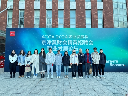 2024年10月19日,北京物资学院ACCA方向班的学生代表在辅导员王鹏莉老师的带领下,参加了由ACCA(特许公认会计师公会)主办的2024 ACCA职业发展季北京站活动。此活动汇聚了来自海内外的顶尖ACCA学员、准会员及会员,共同搭建了一个与优秀雇主直接对话的平台,旨在探索职业机遇,共绘职业蓝图。