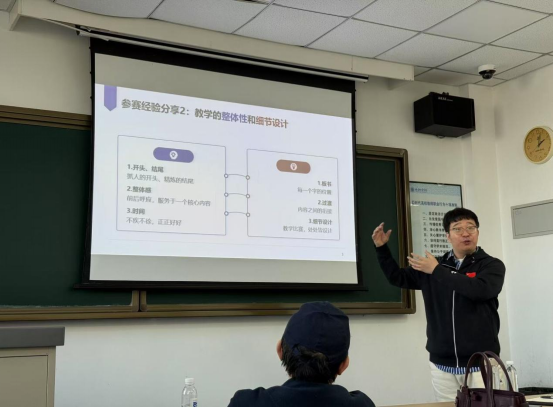 在随后的教学展示环节,参赛教师依次登台呈现精心设计的教学片段。每位教师展示后,专家团从教学内容设计、教学节奏把控、信息化手段运用等维度进行细致点评。指导老师特别指出:“教学创新需扎根学科本质,教学内容应为知识理解服务,避免形式大于内容",并从教学仪态、语言感染力等细节给予参赛选手优化建议。