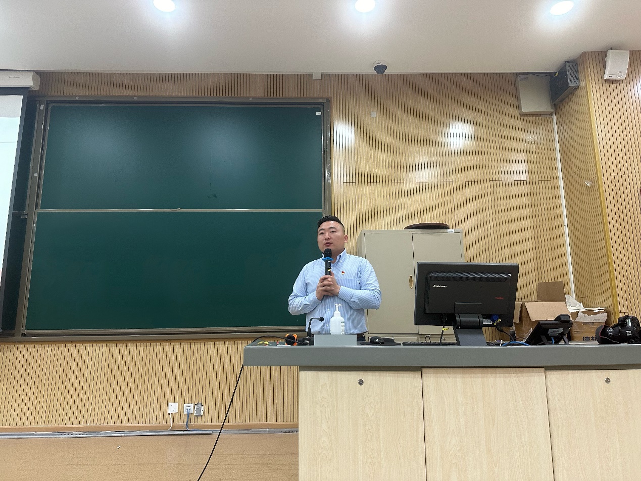 康玉宝老师以“树立终身学习理念,创造人生事业辉煌”为主题讲授专题党课。康玉宝老师从树立终身学习理念的原因、方法和要求这三方面向党员们阐述树立终身学习理念的必要性和重要性,引导党员同志走上新的学习和工作岗位上要脚踏实地、锐意进取、青春向党、砥砺前行,以永远在路上的热情和执着,在青春的赛道上努力奔跑,开创人生事业新的辉煌。