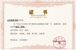 由中国商业会计学会主办、江苏理工学院承办、厦门九九网智科技有限公司技术支持的“2025年全国大学生数智化业财融合竞赛”区域赛和总决赛分别于5月25日和6月7日线上成功举行。在指导老师朱丹和赵妍的带领下,由田雨虹、袁媛、靳乐彤、李虹烨四名同学组成的本科团队在区域赛当中表现出色,荣获团队三等奖;由刘琦、张晨淼、郭佳涵、于冰四名同学组成的研究生团队在总决赛中脱颖而出,荣获全国总决赛团队一等奖。