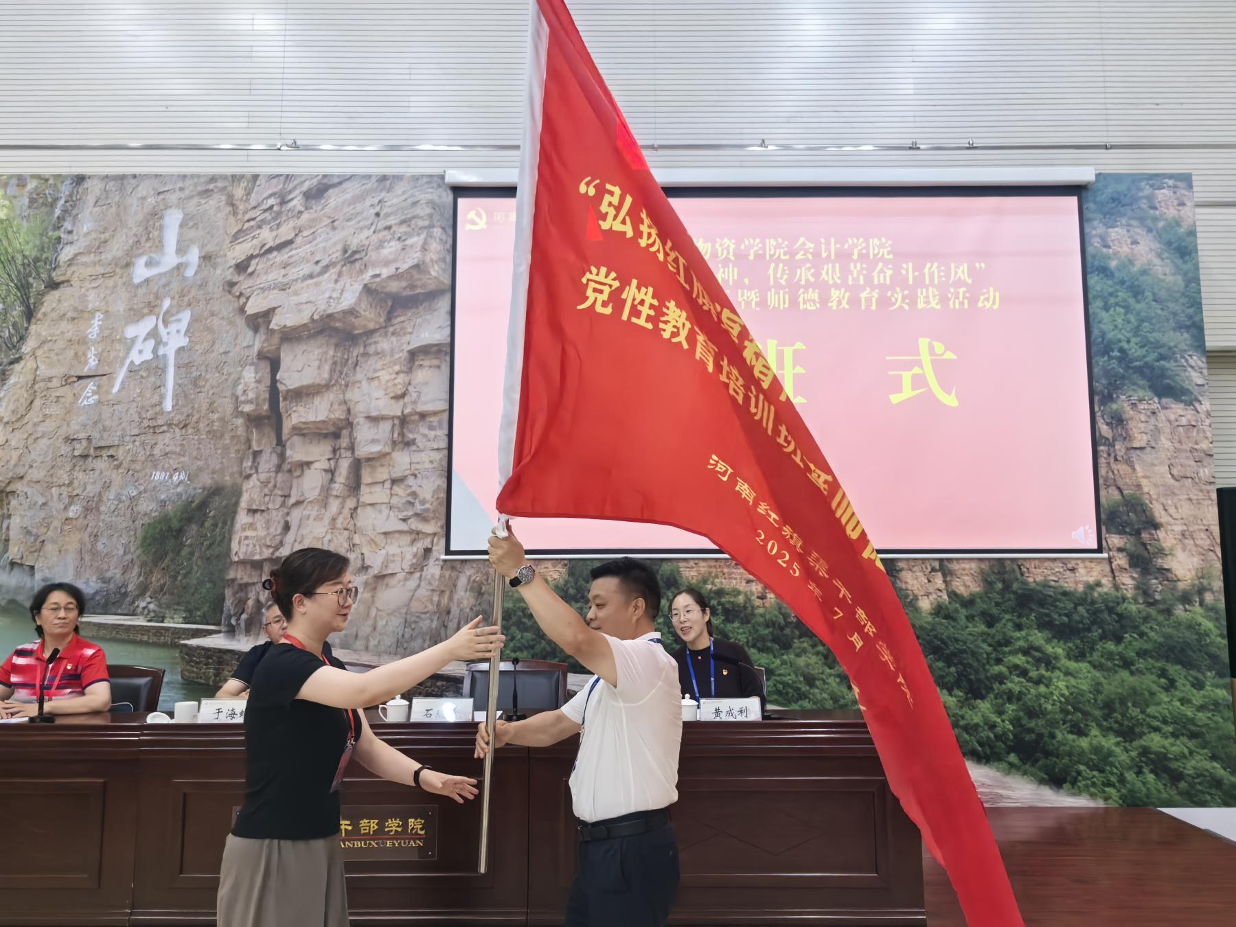 党委副书记鲁楠作为参训学员代表受旗。红旗飘扬间,学员们接过传承精神的重任,正式展开为期3天的培训学习和实践活动。