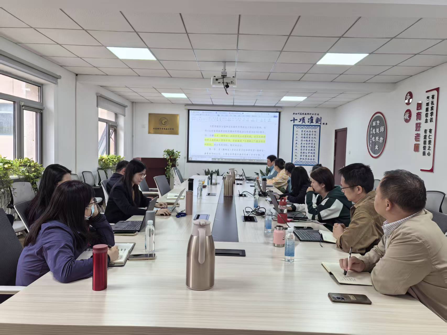 会议伊始,刘艳荣书记系统介绍了《中国共产党支部工作条例(试行)》《中国共产党普通高等学校基层组织工作条例》《北京物资学院系(教研室)务会办法》等相关制度的核心内容及相互联系。结合在落实过程中的问题明确了系务会议的议事范围,强调了制度中关于高校教师党支部在落实立德树人根本任务、加强思想政治引领方面的重要作用。要求将全面从严治党责任落实到具体工作中,特别是在教师的师德评价、职称评定等环节强化政治把关。刘艳荣书记结合自身的体会分享了提升会议质量、加强沟通协调和解决实际问题的管理经验和做法,为学院管理骨干提出建议。