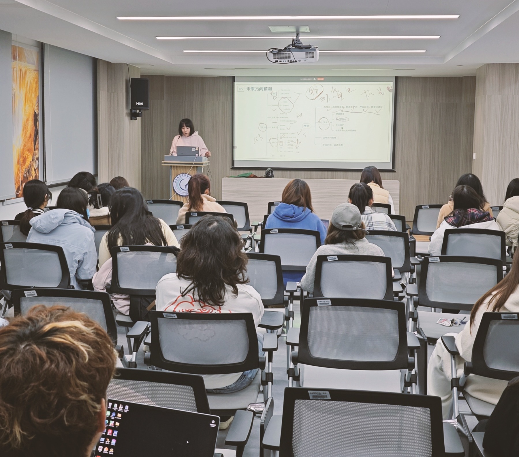 会上,傅叶红老师围绕京考岗位的报名要求、报考地域限制、考核流程等关键内容进行了系统梳理和深入讲解。她结合京考岗位的多元特点,引导同学们根据自身专业背景、职业规划及实际情况,科学、理性地选择报考岗位。针对同学们普遍关心的报考地域选择问题,傅老师也通过实例分析,帮助大家明确了报考范围与相关限制,增强了报考的针对性与有效性。在互动答疑环节,同学们踊跃提问,问题涉及简历照片规范、个人信息安全防护、笔试分数调剂机制等多个备考热点。傅老师逐一进行了细致、耐心的解答,为同学们扫除了报考过程中的疑惑,增强了备考信心。现场交流活跃,反响良好。