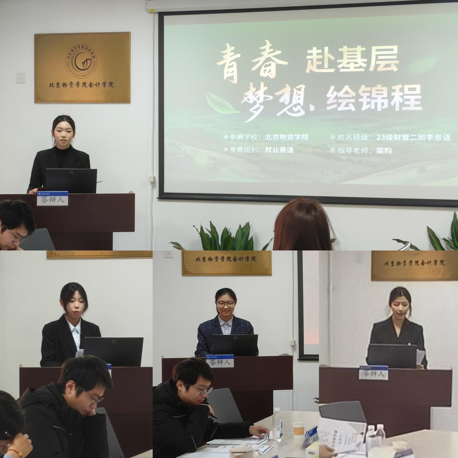 决赛设“成长”与“就业”两大赛道,通过主题陈述和互动问答两大环节全面考察选手的综合素养与职业准备情况。在成长赛道中,十位选手围绕职业目标、学习实践行动及持续优化路径等方面,系统展示了个人对未来的深入思考与逐步探索。他们结合专业背景、性格测评、实习实践等要素,生动阐释了如何通过分阶段、有步骤的积累,不断提升综合能力,为未来职业发展奠定坚实基础。选手表达逻辑清晰、内容充实,展现出会院学子对职业道路的理性认知与执着追求。就业赛道的选手则更加注重实战能力与岗位匹配度的呈现。他们从个人职业目标出发,深入剖析岗位胜任力要求与发展潜力,清晰阐释自身能力结构与目标岗位的契合点,并结合具体案例与数据,分享了在求职准备过程中的收获与思考,体现出较强的职业前瞻性和务实精神。
