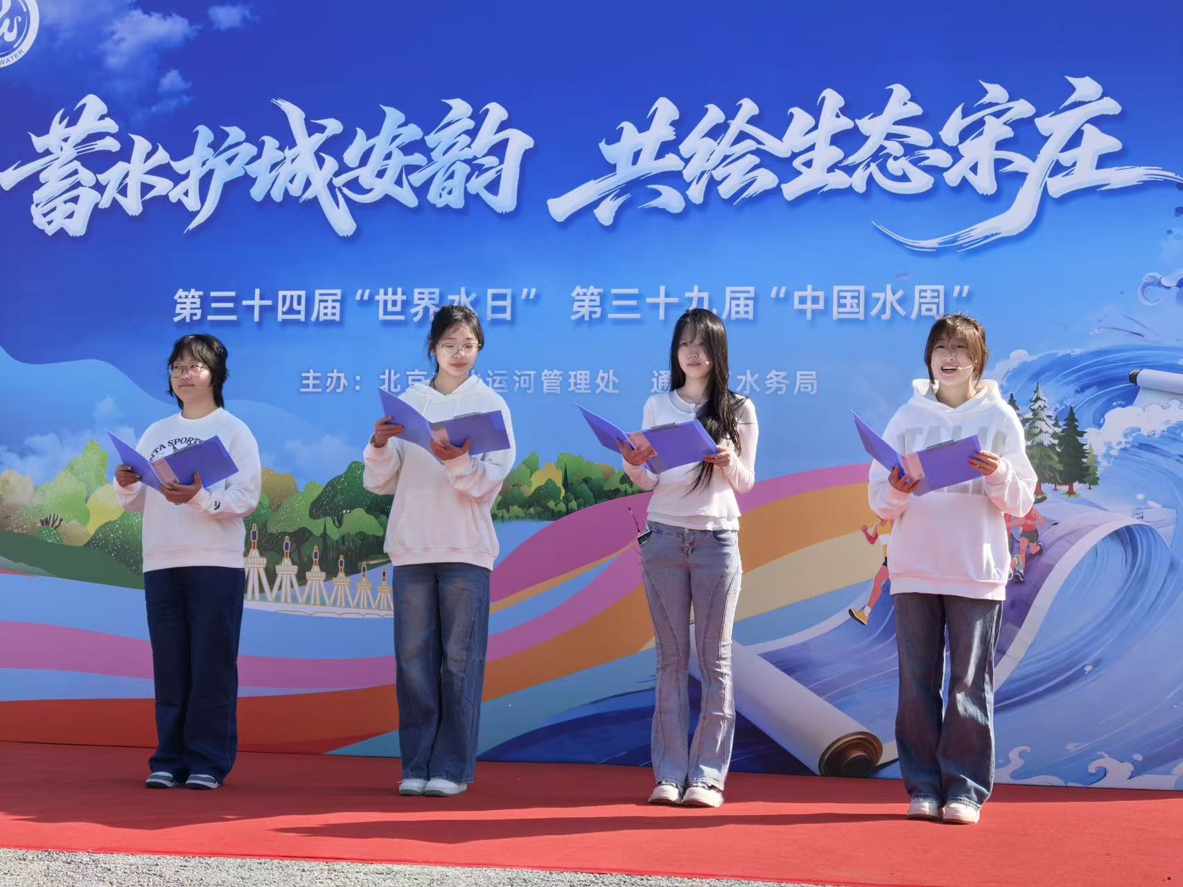 学生代表赴北京通州宋庄参加主题宣传活动。学生们以一场《运河情,节水心》主题朗诵展演,用深情的语言追溯运河文脉,诠释节水理念,在诵读中传递对水资源保护的深刻思考与自觉担当。演出从“小我”的情感抒发,自然升华为对环境保护、文化赓续等“大我”命题的青春回应,生动展现了会院学子融家国情怀于艺术实践、赋青春以深远内涵的精神风貌。