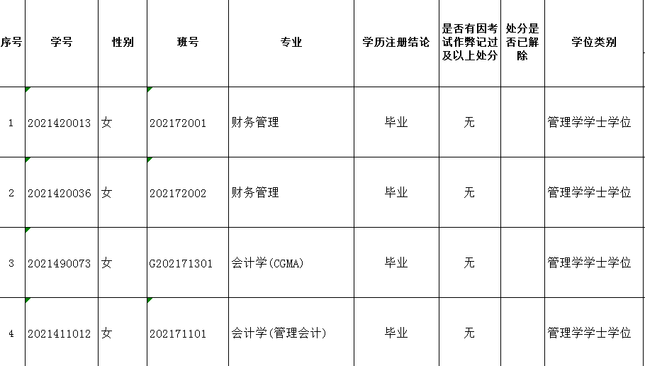 经委员投票表决,同意决定建议授予牛锦坪等4名学生管理学学士学位(名单如图所示)。