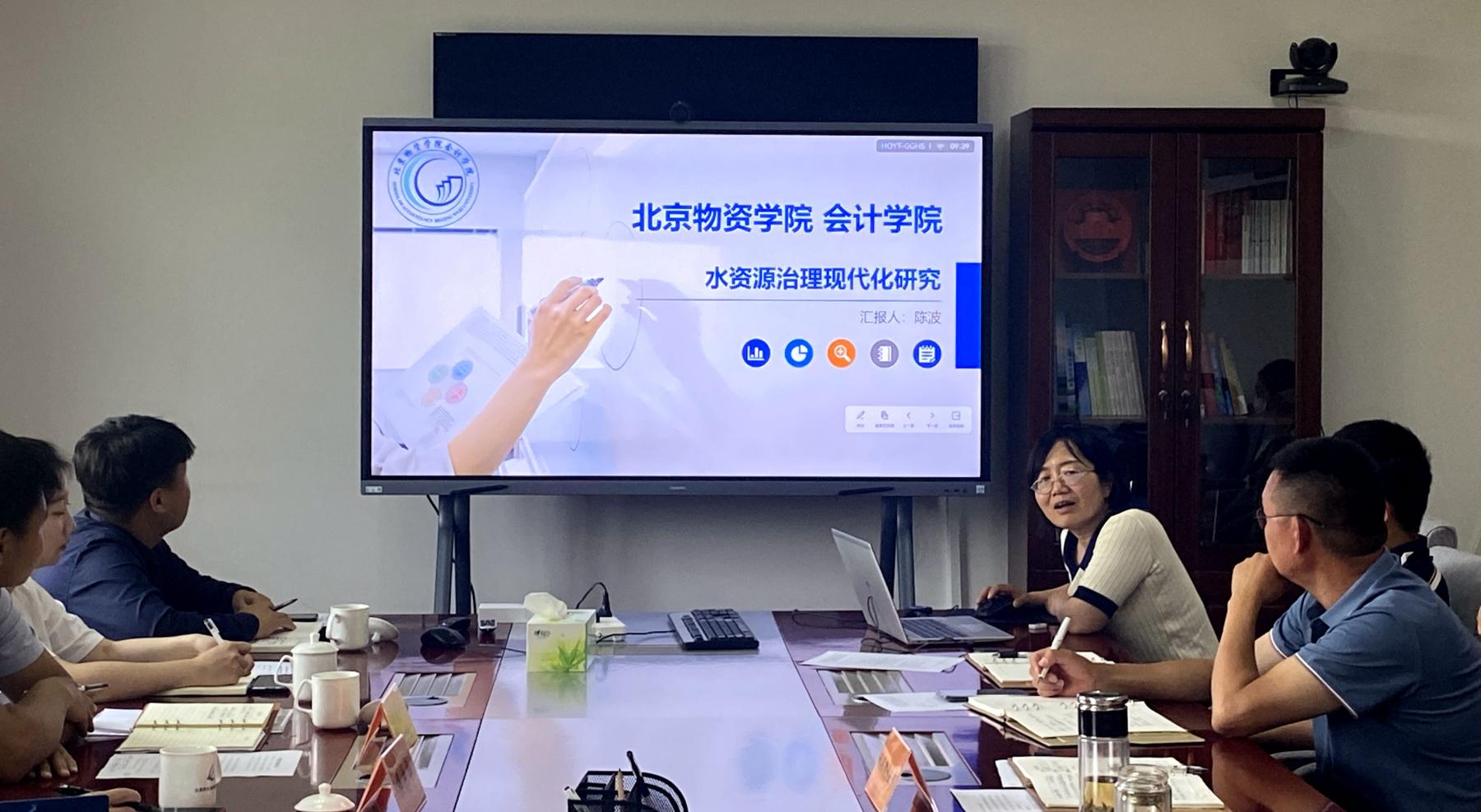 接下来,共建的支部进行分享和交流。会计专业教师党支部书记陈波介绍了支部情况,分享了会计系资源环境会计研究团队关于水资源治理现代化的研究课题开展情况和研究成果,并期待与北运河管理处合作开展进一步研究,推动科研成果在实际工作中的应用。北运河管理处北关管理所党支部书记沙洪利介绍了支部党员情况和党建工作的组织和运行情况,该党支部在北运河的生态保护、防洪防讯、日常运行维护方面做了大量工作,并取得了可喜的成果。