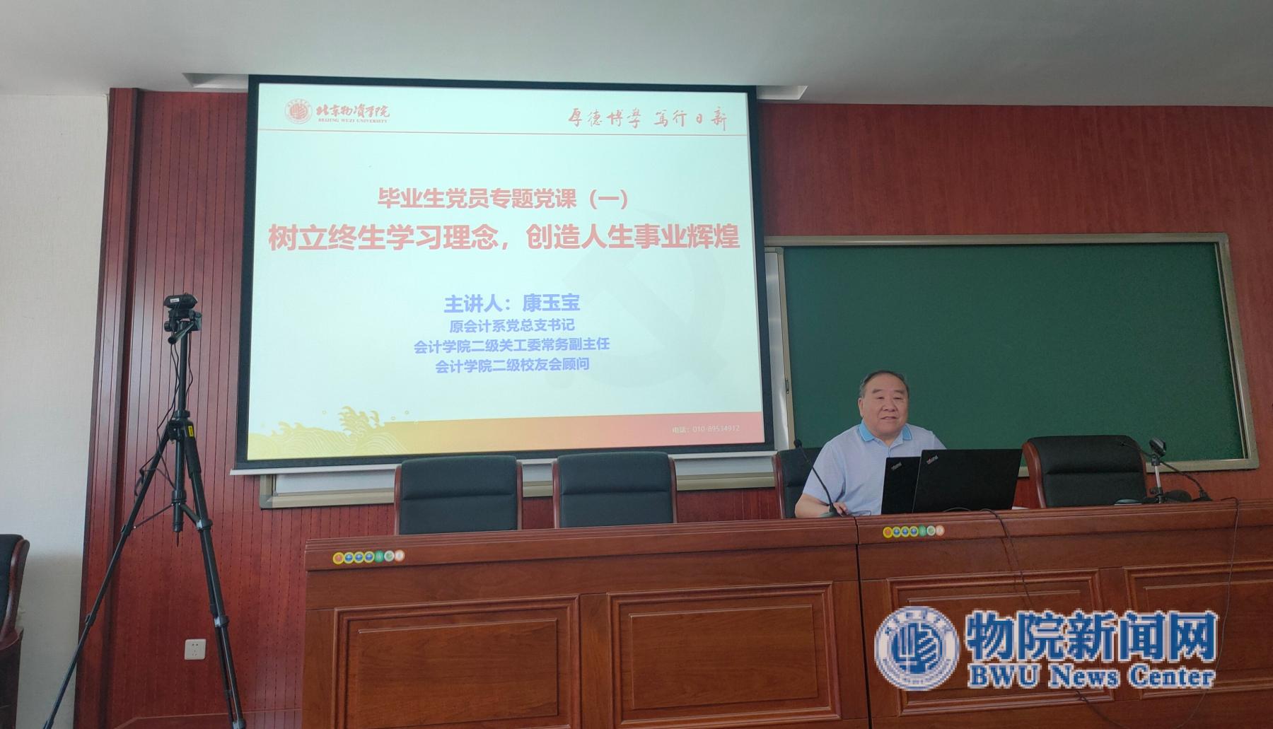 康玉宝老师以“树立终身学习理念,创造人生事业辉煌”为主题的讲授专题党课。康玉宝老师从树立终身学习理念的原因、方法和要求这三方面向党员们阐述树立终身学习理念的必要性和重要性,表达对毕业生党员走好人生道路的殷切期盼,激励毕业生党员在未来的学习和工作岗位中以永远在路上的执着和坚毅,在青春的赛道上奋力奔跑,创造人生事业的新辉煌。