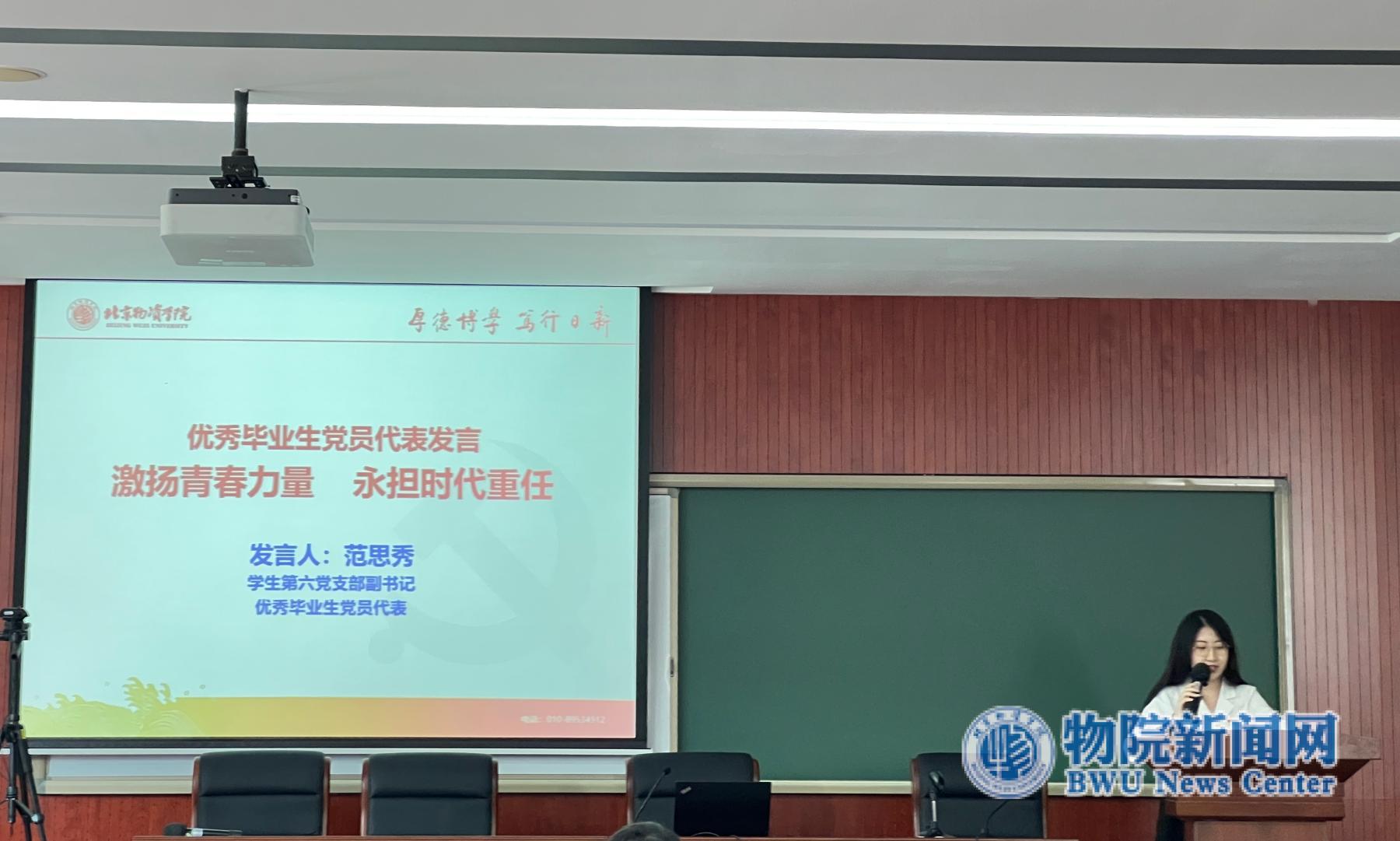 党课上,优秀毕业生党员、学生第六党支部副书记范思秀作题为“激扬青春力量,勇担时代重任”的微党课。范思秀同学通过回忆自己在学校的每一次难忘经历,汇报了自己的成长与蜕变,表达对党组织、学校和老师精心培育的无限感激,同时也立志把青春奋斗融入党和人民事业,以勇立潮头的志气不负时代,以干字当头的骨气不负韶华,以扎根基层的底气不负党和人民。