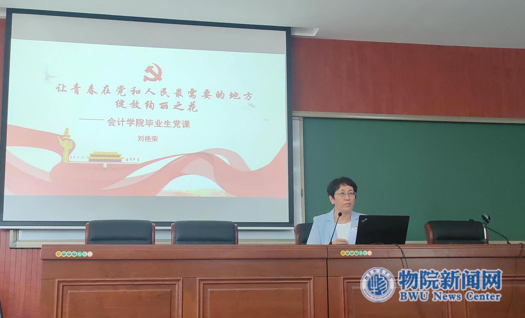 党委书记刘艳荣、原会计系党总支书记康玉宝、学院专职组织员、各学生党支部书记、全体毕业生党员参加了党课。党课由 av99