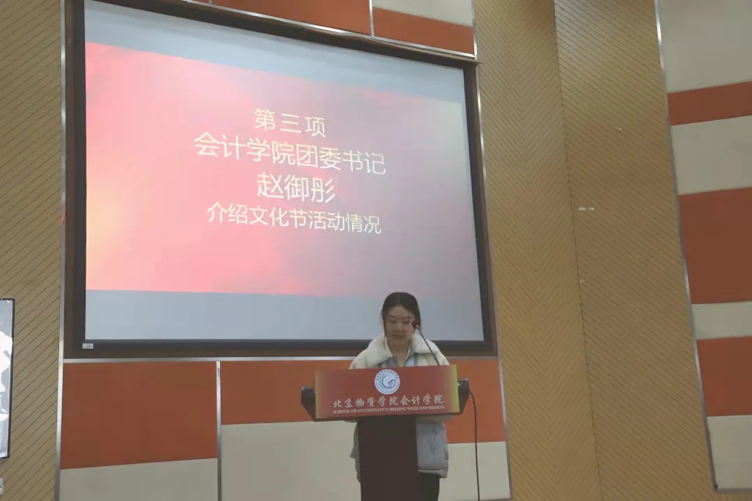 随后, av99 团委书记赵御彤老师对本次会计文化节的系列活动进行了简单介绍。在之后的活动中,希望同学们展现当代大学生精神风貌。赵老师还指出在接下来的会计文化节中,还会开展更多会计专业相关的活动。