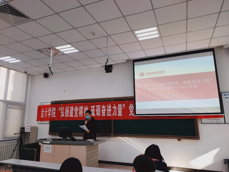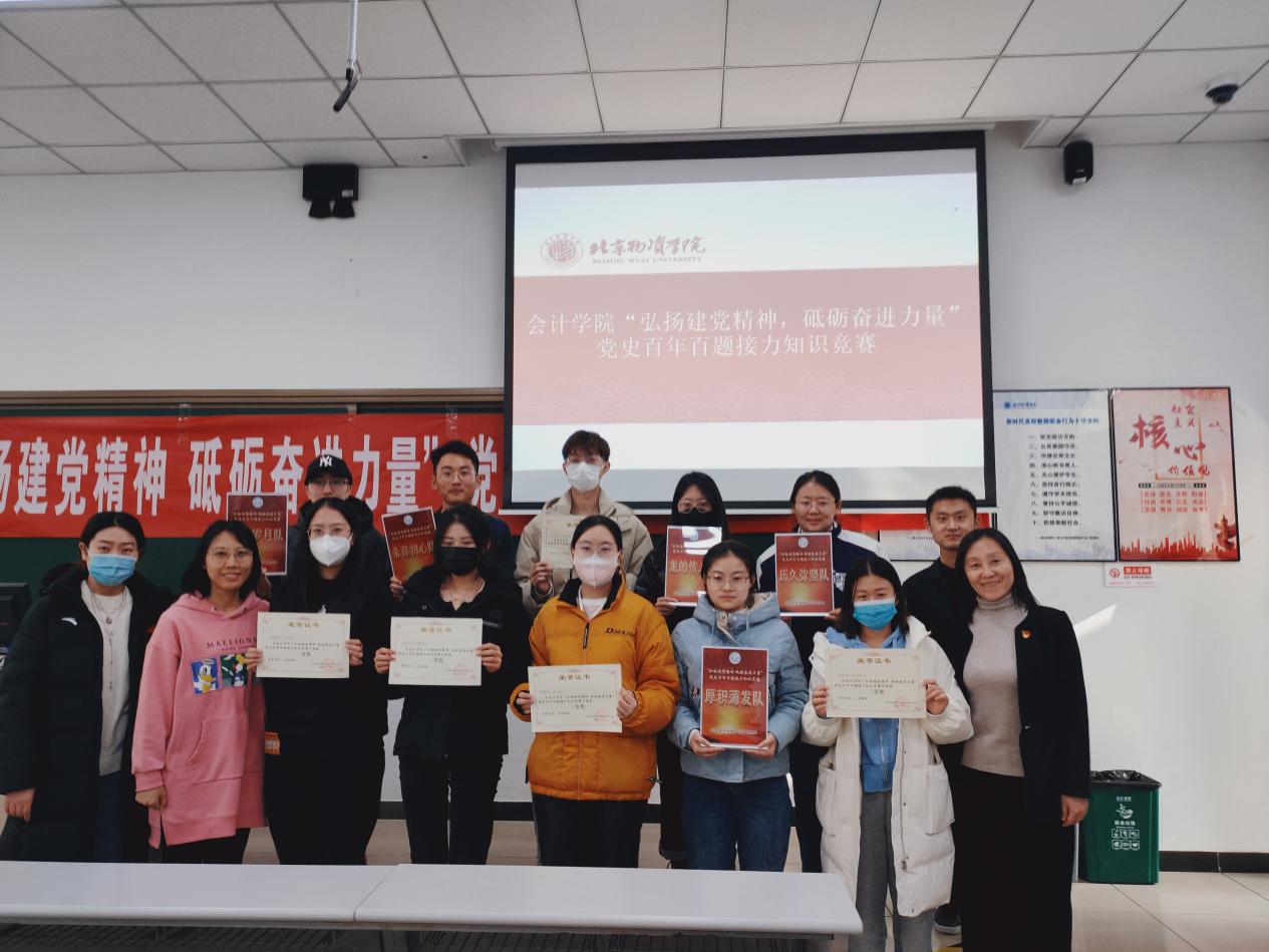 比赛中,教师和学生党支部的参赛队员,准备充分、现场反应迅速,运用自己丰富的党史知识将比赛一次次推向高潮,充分展现了深厚的党史知识功底和斗志昂扬的精神状态。最终经过激烈的比拼,财务管理专业教师党支部派出的财商兴邦队、财务管理专业学生党支部派出的永葆初心队获得一等奖,会计专业教师党支部派出的会计强国队、会计专业第二学生党支部派出的峥嵘岁月队获得二等奖,研究生党支部派出的龙的传人队、会计专业第一学生党支部派出的历久弥坚队、会计专业第三学生党支部派出的厚积薄发队获得三等奖。