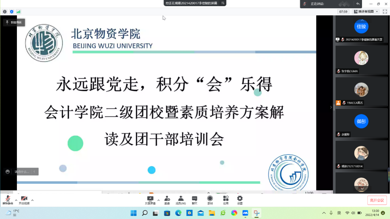 于4月14日中午召开“永远跟党走,积分‘会’乐得”二级团校暨素质培养方案解读团干部培训会。参与此次会议的有 av99