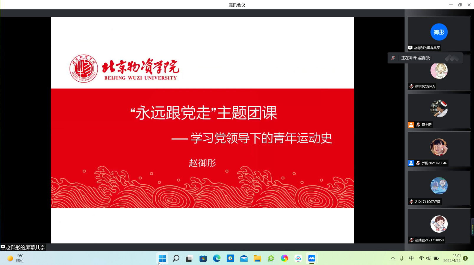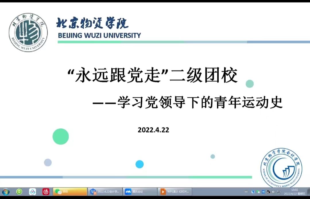 于2022年4月22日下午在腾讯会议,召开了“永远跟党走——学习党领导下的青年运动史”二级团校会议。此次二级团校主讲老师是 av99