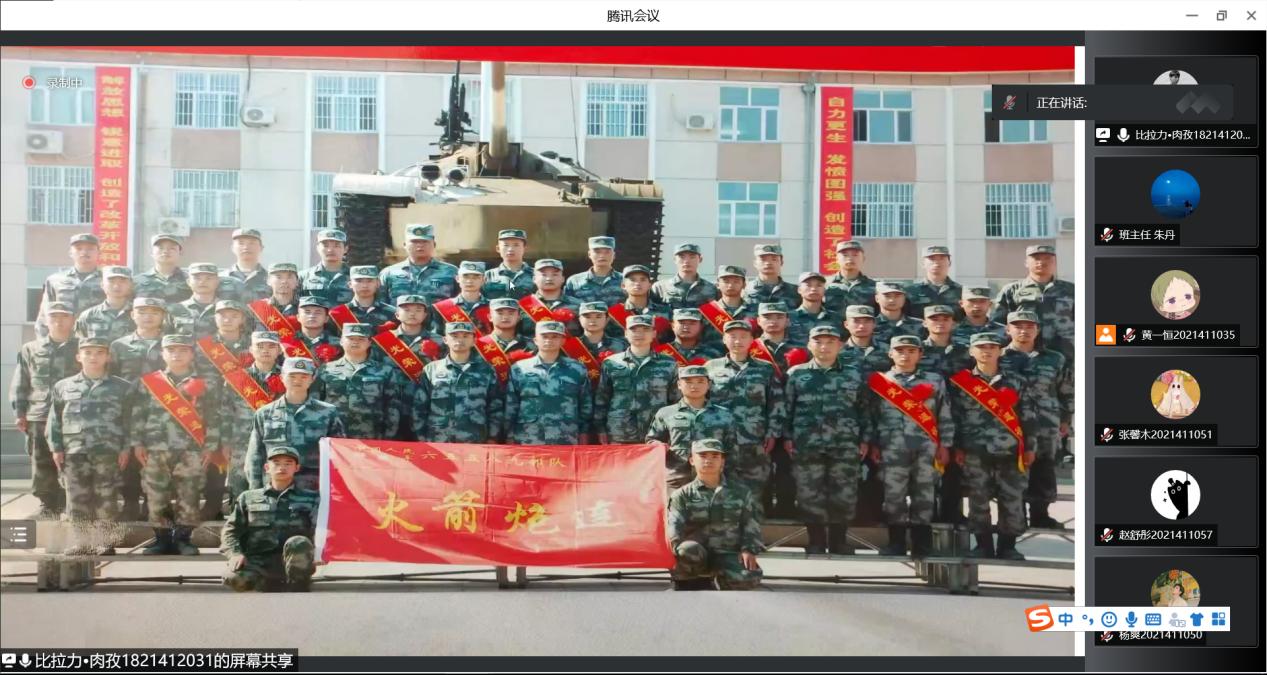 最后一个部分由退伍军人比拉力同学进行参军经验分享。比拉力同学首先普及了入伍要求和流程,介绍了入伍的十大优势,并细致讲解了国防的意义。他强调道:“国无防不立,民无防不安。国防最重要的意义是体现国家综合实力,是国家安全的保障,是国家独立自主的前提。”最后比拉力同学通过一张张照片以及照片背后的故事,分享了自己在部队的日常。在照片中我们可以感受到部队强大的凝聚力和战友间浓厚真挚的感情。在比拉力同学退伍后的日常生活中,我们也常常能够感受到部队在他身上留下的正直、刻苦、坚韧等优秀品质。2022年春季征兵已全面开始,参军报国,无上光荣!