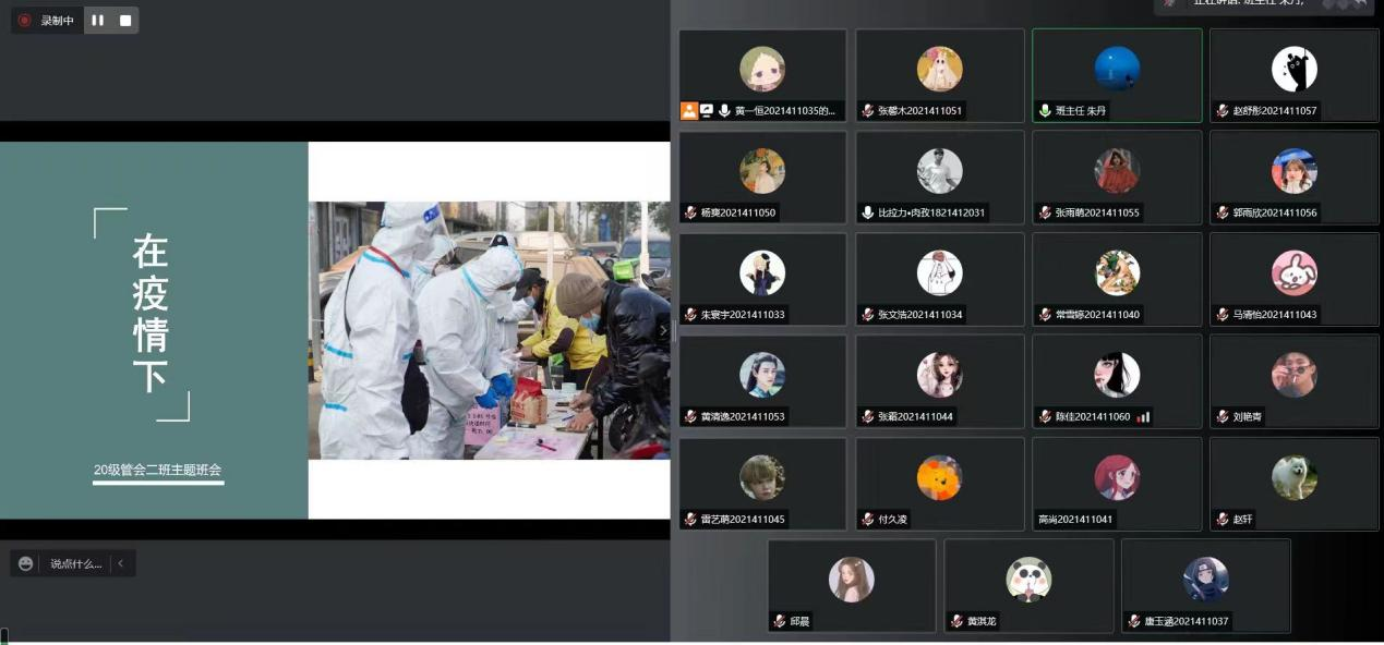 20级管理会计二班通过线上的形式开展了“宣传抗击疫情,强调网课纪律,鼓励参军报国”的主题班会,由班长黄一恒同学主持这次班会。